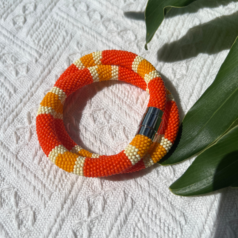 Handmade beaded bracelets inspired by the patterns of real snakes — designed for those who can’t take a snake outside, but still want to make a statement.